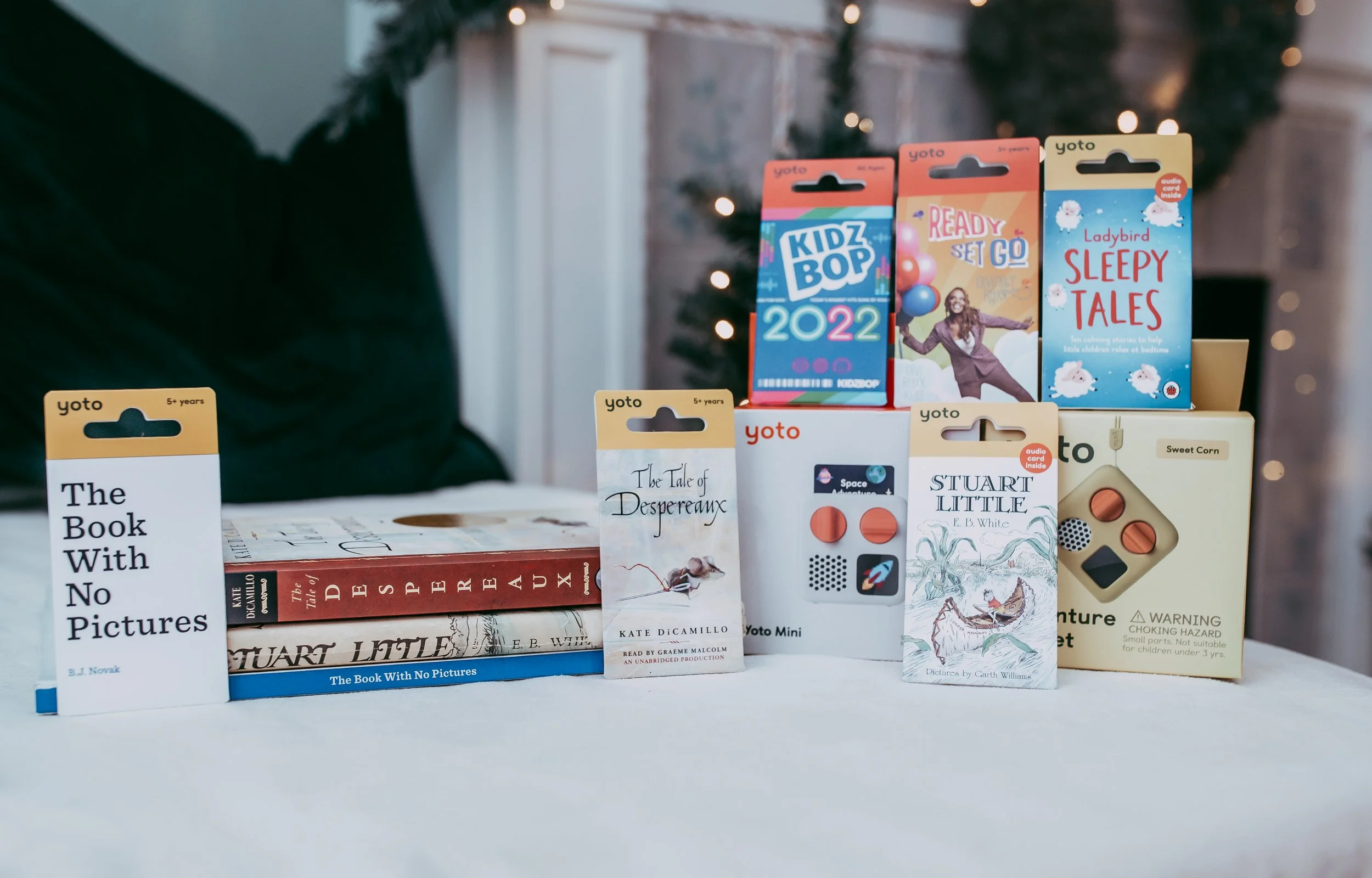 The Yoto player is made for kids from 3 to 12+ using physical cards to explore the best audio, music, activities and educational audio. There are no microphones no cameras and no ads.